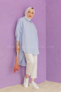 Lamelif Yırmtaçlı Gömlek Buz Mavisi