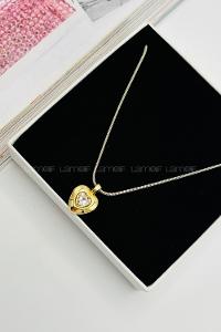 Lamelif Gold Çelik Kristal Kalp Taşlı Kararmaz Kolye