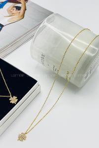 Lamelif Gold Yonca Zirkon Taşlı Kolye