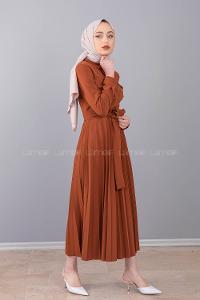 Lamelif Balon Kol Katlı Tesettür Elbise Acı Kahve