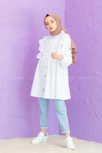 Modalamelif Gömlek Yaka Fırfırlı Tunik Beyaz