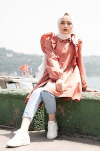 Modalamelif Gömlek Yaka Fırfırlı Tunik Gül