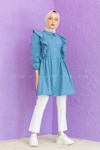 Modalamelif Gömlek Yaka Fırfırlı Tunik Mavi