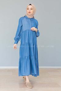 Modalamelif Gömlek Yaka Katlı Elbise Turkuaz