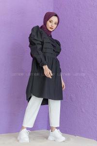 Modalamelif Gömlek Yaka Pileli Tunik Siyah