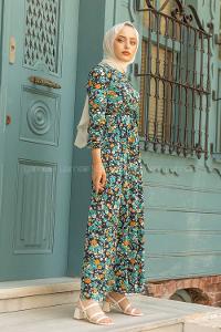 Lamelif Elica Tesettür Elbise Zümrüt