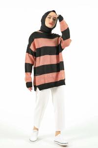 Lamelif Çizgili BalIkçı Kazak Siyah