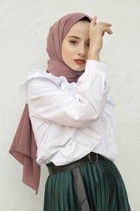 Lamelif Elegant Desen Müslin Şal Gül Kurusu
