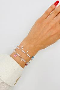 Lamelif Gümüş İnci Detaylı Renkli Kalpli Zarif Bileklik