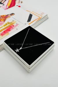 Lamelif Gümüş Çelik Kristal Yıldız Taşlı Kararmaz Kolye