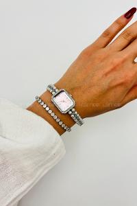 Lamelif Gümüş Pembe Ekartman İnci Detaylı Metal Kordon Kol Saati