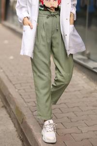 Modalamelif Haki Ön Kuş Gözü Bağcıklı Pantolon