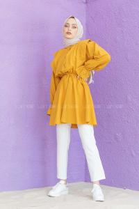 Modalamelif Hakim Yaka Bel Lastikli Tunik Hardal Sarısı