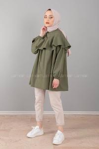 Modalamelif Hakim Yaka Fırfırlı Tunik Haki