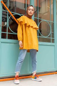 Modalamelif Hakim Yaka Fırfırlı Tunik Hardal Sarısı