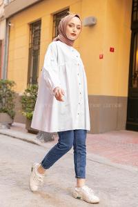 Lamelif Müslin Tesettür Gömlek Beyaz