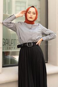 gömlek yaka, önü gizli düğme detaylı gömlek.