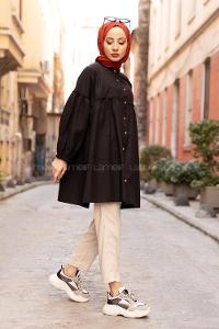 Lamelif Omuz Vatka Detaylı Tesettür Gömlek Siyah