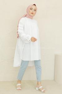 Lamelif Omuz Vatka Detaylı Tesettür Gömlek Beyaz
