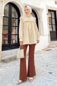Lamelif Lopez Balon Kol Tunik Kahverengi
