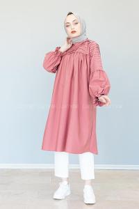 Lamelif Gizli Düğme Detaylı Tesettür Tunik Pembe