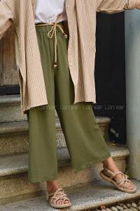 Modalamelif Hasır İpli Bol Paça Pantolon Haki