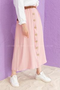 Modalamelif Hasır Kemerli Ayrobin Etek Pudra