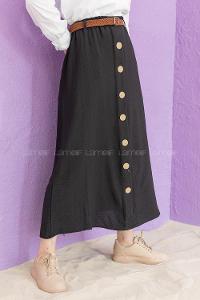 Lamelif Cep Detaylı Kloş Keten Etek Siyah
