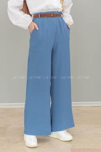 Modalamelif Hasır Kemerli Ayrobin Pantalon İndigo