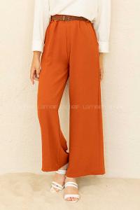 Modalamelif Hasır Kemerli Ayrobin Pantalon Kiremit