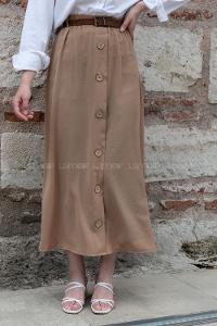 Modalamelif Hasır Kemerli Düğmeli Etek Soft Kahve