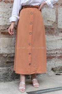 Modalamelif Hasır Kemerli Düğmeli Etek Somon
