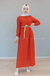 Modalamelif Hasır Kemerli Pıtırcık Desen Elbise Kiremit