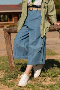Lamelif Midi Boy Bol Paça Pantolon Kot Mavi