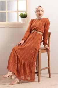 Lamelif Elica Tesettür Elbise Acı Kahve