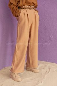 Lamelif Cırt Kapamalı Krep Pantolon Sütlü Kahve