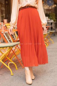 Modalamelif Hasır Kemerli Şifon Etek Kiremit