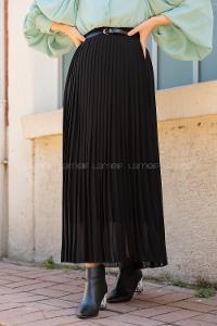 Modalamelif Hasır Kemerli Şifon Etek Siyah
