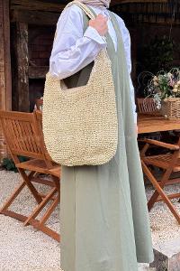 Lamelif El Örgüsü Hasır Çanta Plaj Çantası