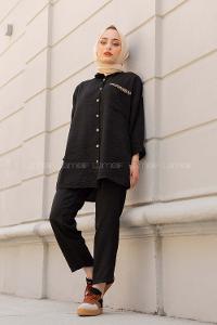 Lamelif Düğmeli İkili Takım Siyah