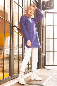 Modalamelif Havis Yırtmaç Detaylı TunikTunik İndigo