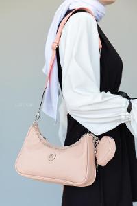 Lamelif Tokalı Çapraz Askılı Kadın Çanta Pudra