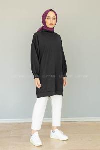 Modalamelif İki İplik Balon Kol Tunik Siyah