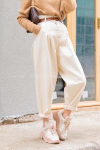 Modalamelif İki Pileli Paçası Pensli Kot Pantolon Krem