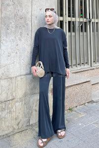 Lamelif Ön Parça Detaylı İkili Takım Antrasit