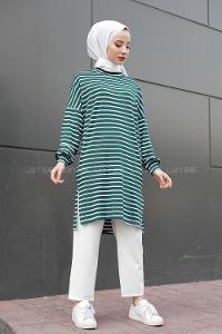 Modalamelif İnce Beyaz Çizgili Tunik Yeşil