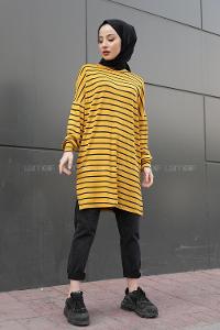 Modalamelif İnce Siyah Çizgili Tunik Hardal Sarısı
