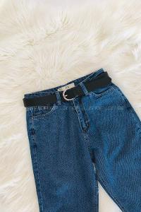Lamelif Siyah Vintage Metal Tokalı Kemer