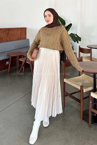 Lamelif İnci Detaylı Triko Kazak Sütlü Kahve