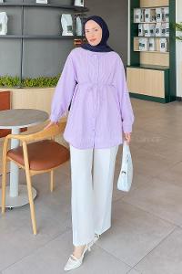 Lamelif İp Bağlamalı Crashlı Tesettür Gömlek Lila